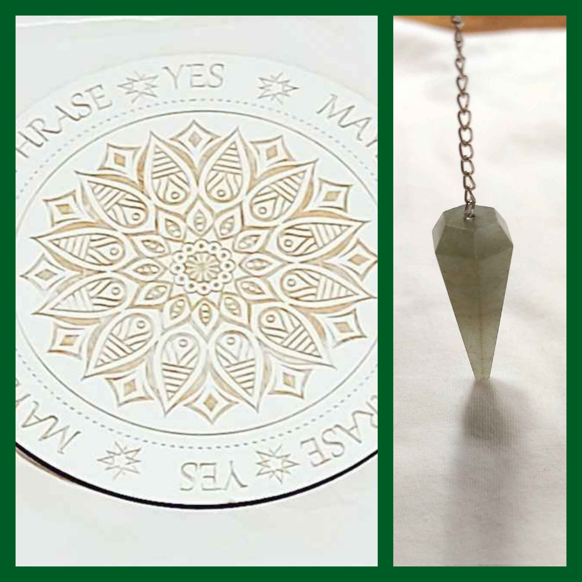 Découvrez notre duo de planches et pendules, l'ensemble parfait pour approfondir votre pratique divinatoire. Ce duo vous accompagne dans votre cheminement spirituel, idéal pour les séances de méditation, les consultations ou l'apprentissage des arts divinatoires.